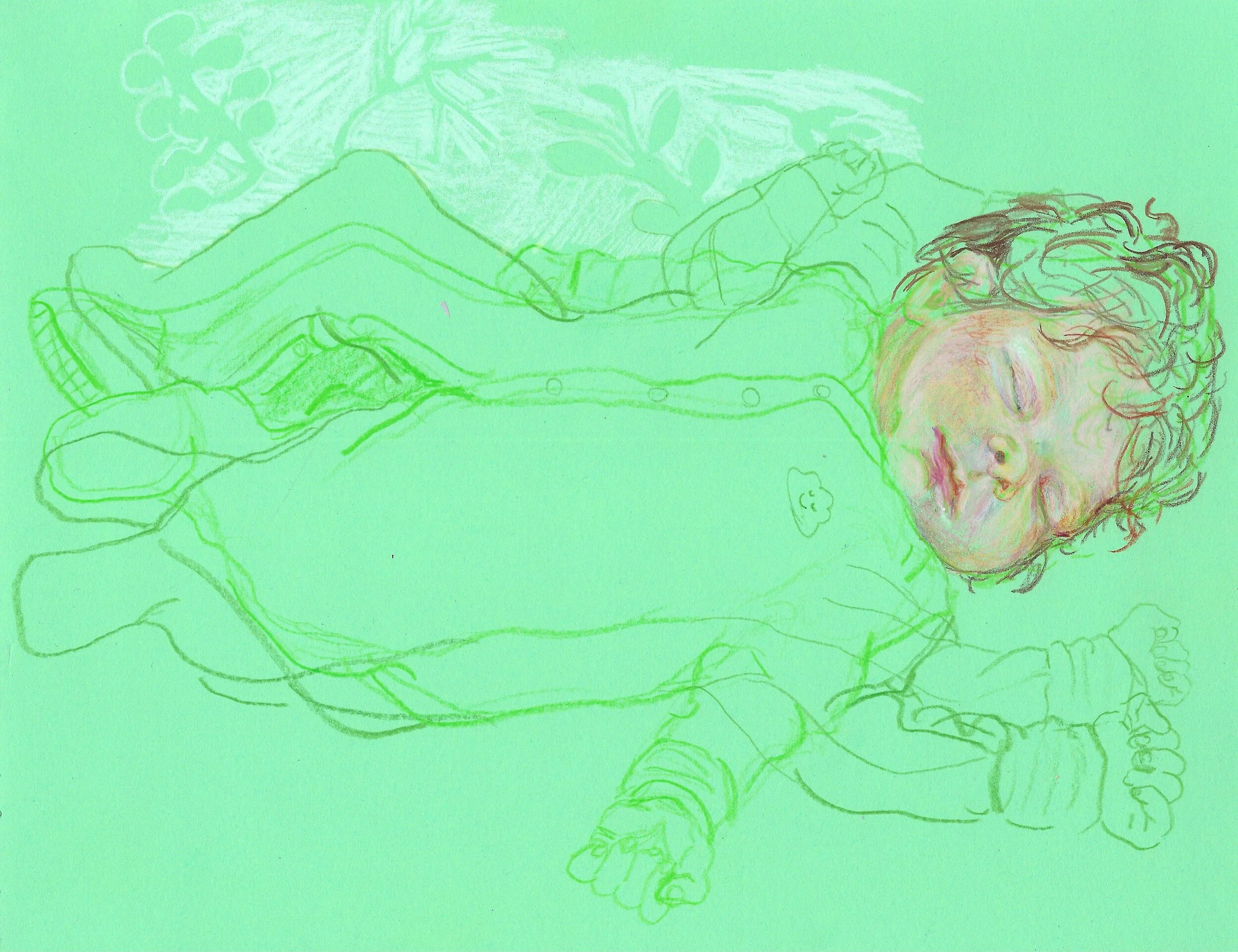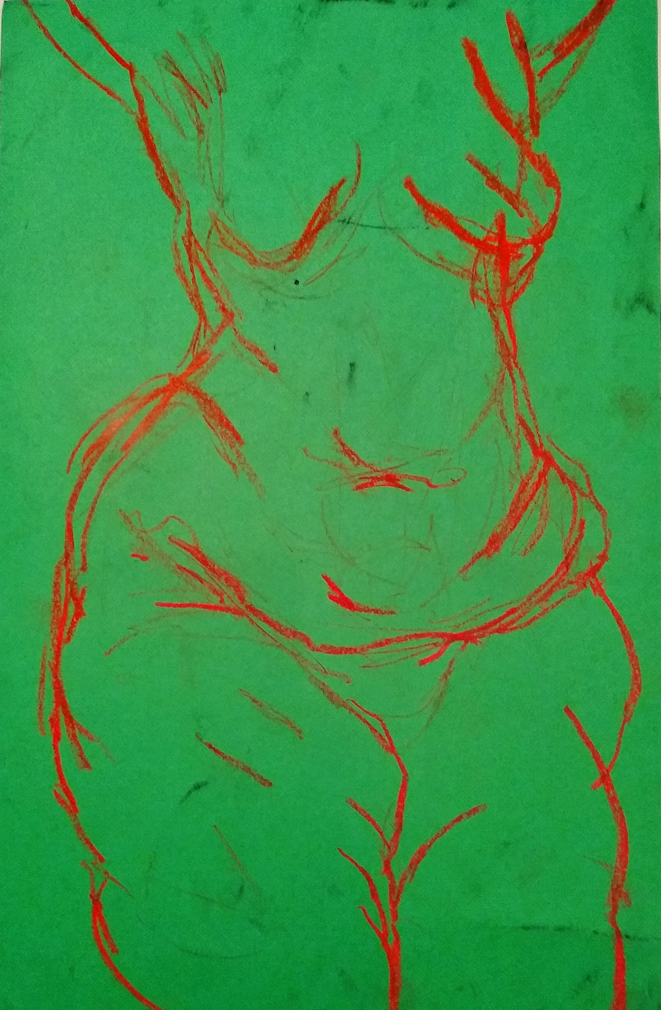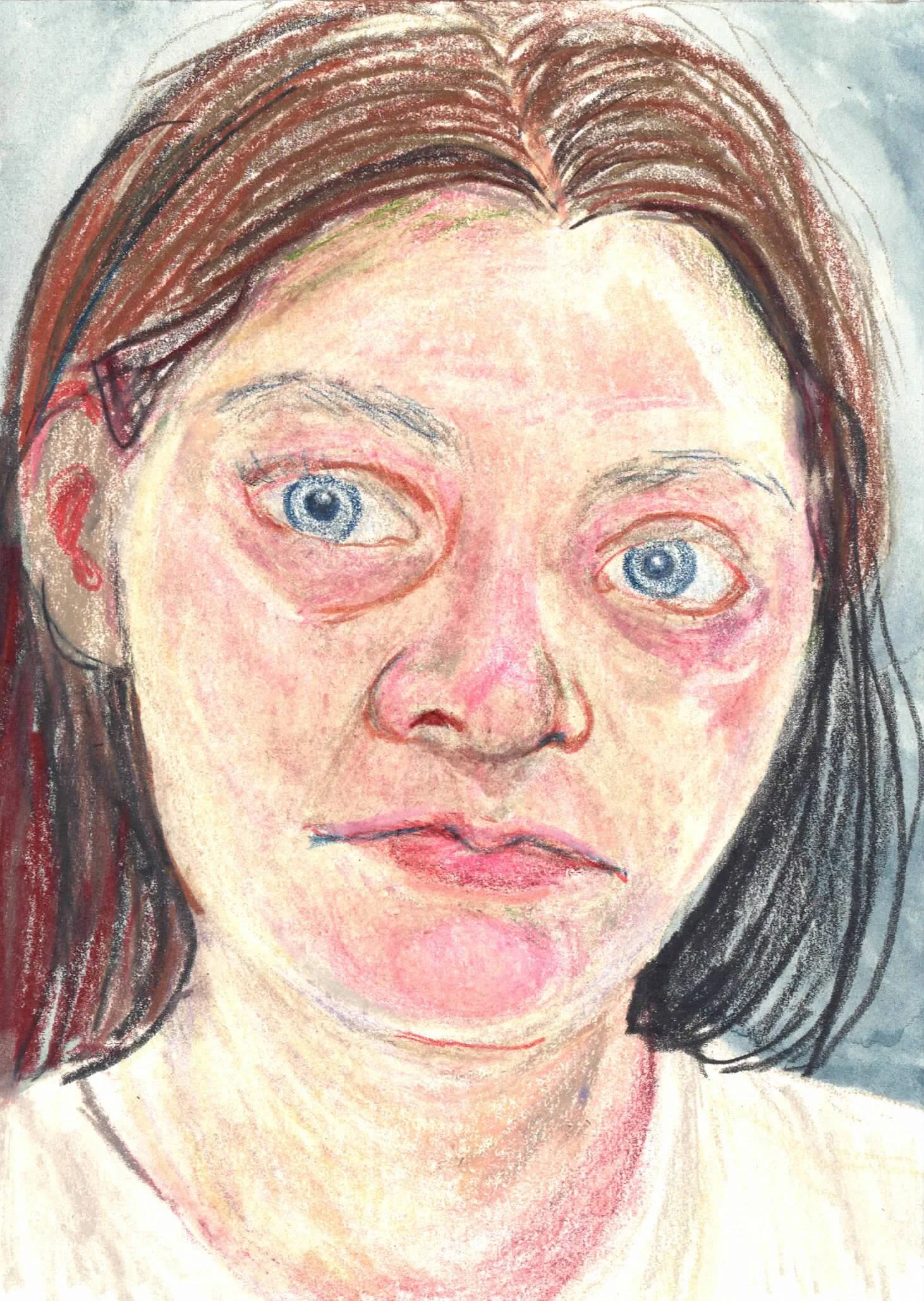 Self portrait as my internet wrestling persona Brainspace the Mind Invader, colored pencil, paper 2021