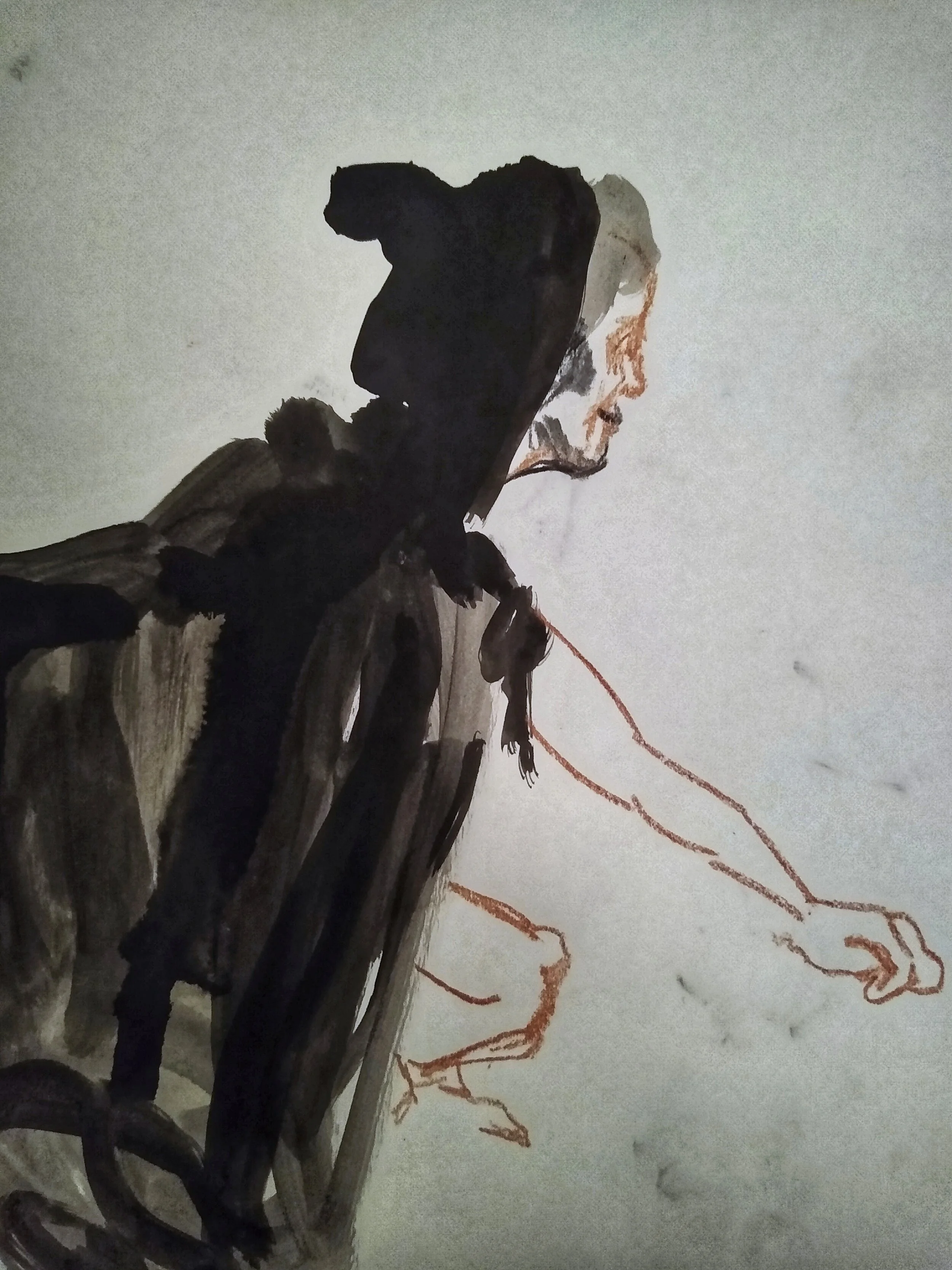 Charlie playing chess on his cellphone colored pencil, paper 2021